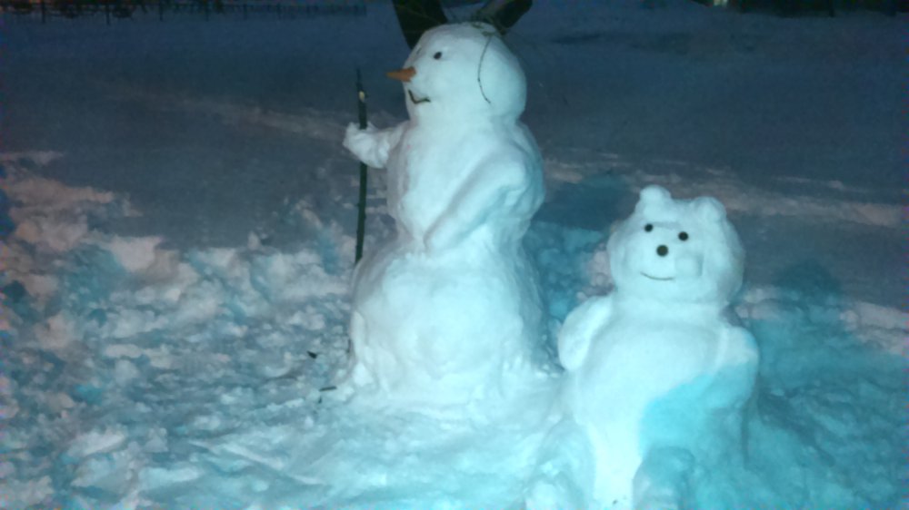 Снегопад прошедшей ночью был необычный , последний раз такой был как говорят синоптики 50 лет назад ! У гаража насыпало аж 19 см.снега . Дети во дворе слепили снеговика , как положено нос - морковка .