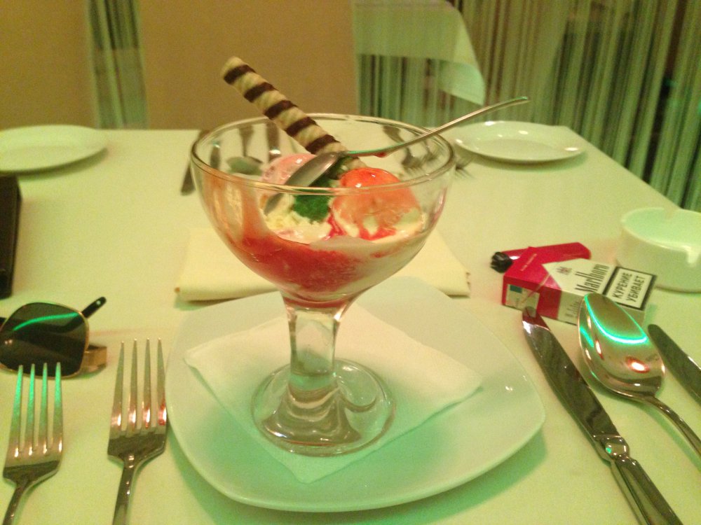 Про ужин писать не стал, были в "Кофемании", на Комсомольском которая,шумно,простенько, на грани убогости.., но , сцуко, дорого:D